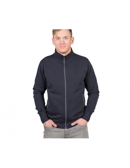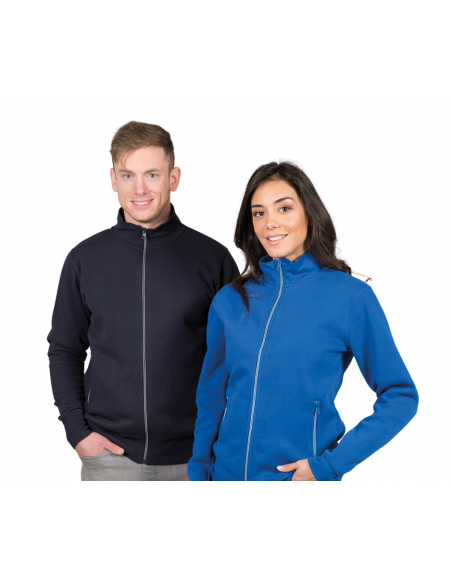 Felpa cotone – polyestere - Collo a lupetto - Cerniere con profilatura in contrasto - Zip lunga - Due tasche con zip - Nastro di rinforzo bicolore interno collo - Polsini e fondo maglia in costina elasticizzata - Cuciture ribattute