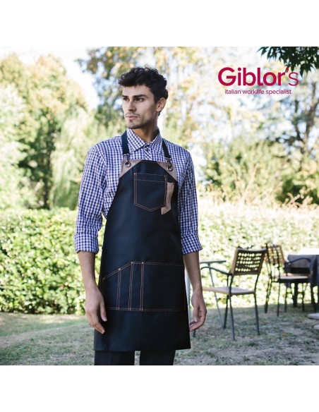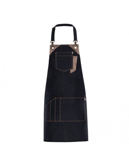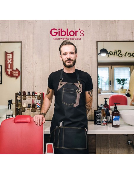 Grembiule in tessuto funzionale e versatile, idro e oliorepellente, easy clean, adatti a completare lo stile dei nuovi barber shop ispirati agli anni cinquanta. Il grembiule Picasso ha bretelle regolabili rimovibili con moschettone, borchie e contrasti in pelle, un taschino sulla pettorina, una grande tasca centrale e una tasca multipla divisa in scomparti destinati ai diversi attrezzi da lavoro. Ogni scomparto è accuratamente ancorato con rivetti in ottone anticato e ribattuto con impunture a 2 aghi. Tutte queste caratteristiche, unite all’allacciatura regolabile attraverso le fibbie e ai ganci, rendono il capo di forte impatto. Il grembiule Picasso è realizzato totalmente in tessuto in 100% poliestere con qualche applicazione in alcantara.