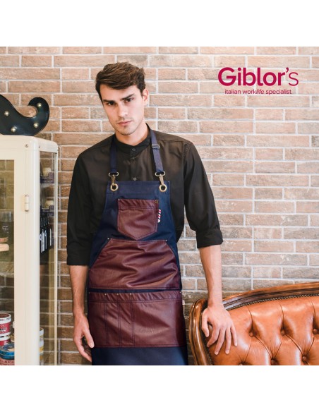 Grembiuli in un tessuto funzionale e versatile, idro e oliorepellente, easy clean, adatti a completare lo stile dei nuovi barber shop ispirati agli anni cinquanta. I Grembiuli Gauguin e Magritte hanno bretelle regolabili rimovibili con moschettone, borchie e contrasti in pelle, un taschino sulla pettorina, una grande tasca centrale e una tasca multipla divisa in scomparti destinati ai diversi attrezzi da lavoro. Ogni scomparto è accuratamente ancorato con rivetti in ottone anticato e ribattuto con impunture a 2 aghi. Tutte queste caratteristiche, unite all’allacciatura regolabile attraverso le fibbie e ai ganci, rendono i capi di forte impatto.Il grembiule è realizzato totalmente in tessuto in 100% poliestere con qualche applicazione in alcantara.
