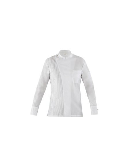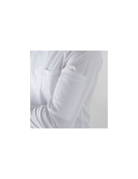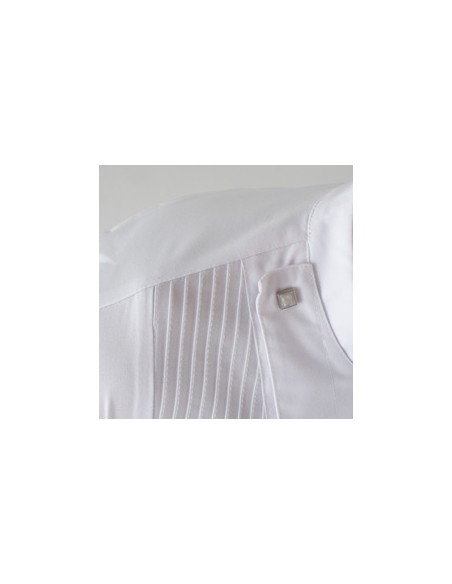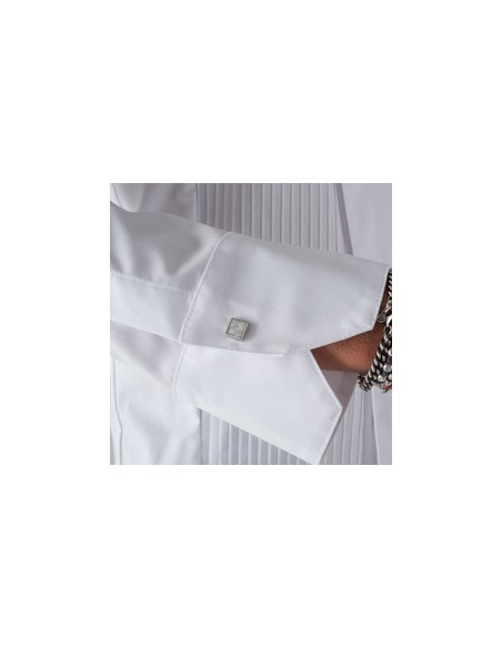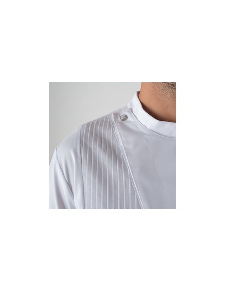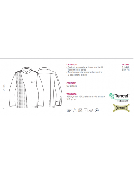 100% Made in Italy, realizzata in TENCEL™ elasticizzato, tessuto pregiato ed altamente innovativo, è ricercata nello stile e nei materiali, di fattura eccellente e curata in ogni dettaglio. Presenta bottoni intercambiabili ed è impreziosita da una elegante plisettatura in stile smoking.