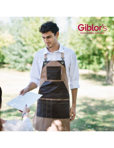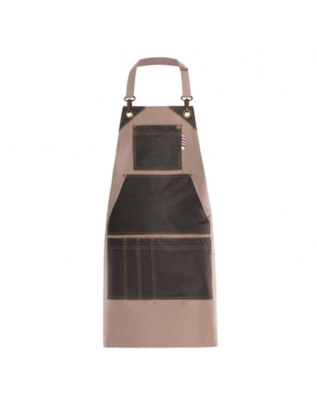 Grembiuli in un tessuto funzionale e versatile, idro e oliorepellente, easy clean, adatti a completare lo stile dei nuovi barber shop ispirati agli anni cinquanta. I Grembiuli Gauguin e Magritte hanno bretelle regolabili rimovibili con moschettone, borchie e contrasti in pelle, un taschino sulla pettorina, una grande tasca centrale e una tasca multipla divisa in scomparti destinati ai diversi attrezzi da lavoro. Ogni scomparto è accuratamente ancorato con rivetti in ottone anticato e ribattuto con impunture a 2 aghi. Tutte queste caratteristiche, unite all’allacciatura regolabile attraverso le fibbie e ai ganci, rendono i capi di forte impatto.Il grembiule Picasso è realizzato totalmente in tessuto in 100% poliestere con qualche applicazione in alcantara.