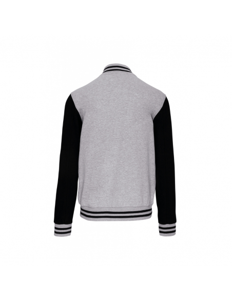 70% cotone / 30% poliestere. Felpa garzata a 3 fili. Maniche a giro a contrasto. Chiusura con automatici sul davanti. Collo, maniche e fondo capo a costine con 2 bordini rigati a contrasto. 2 tasche a filetto sul davanti. Nastrino di rinforzo con motivo spigato e asola per appendere il capo all'interno del collo. Nessuna etichetta con il nome della marca al collo ma solo una piccola etichetta con l'indicazione della taglia per semplificare la personalizzazione. Vera e propria icona della moda.